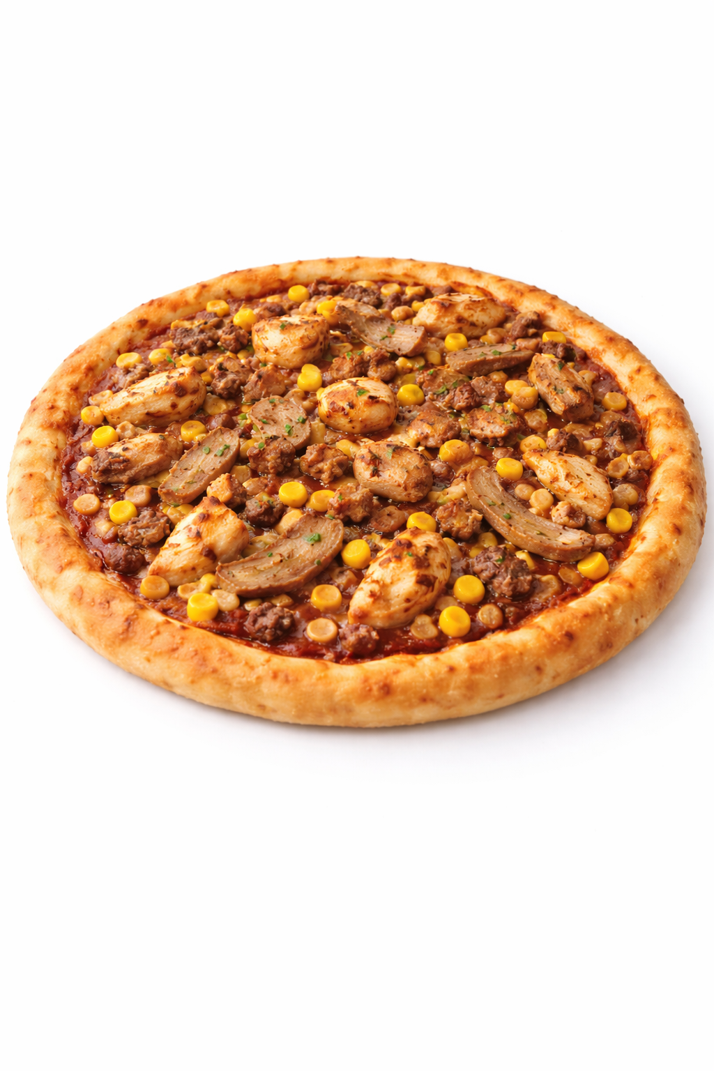 Grilled chicken, BBQ base, red onion, sweetcorn